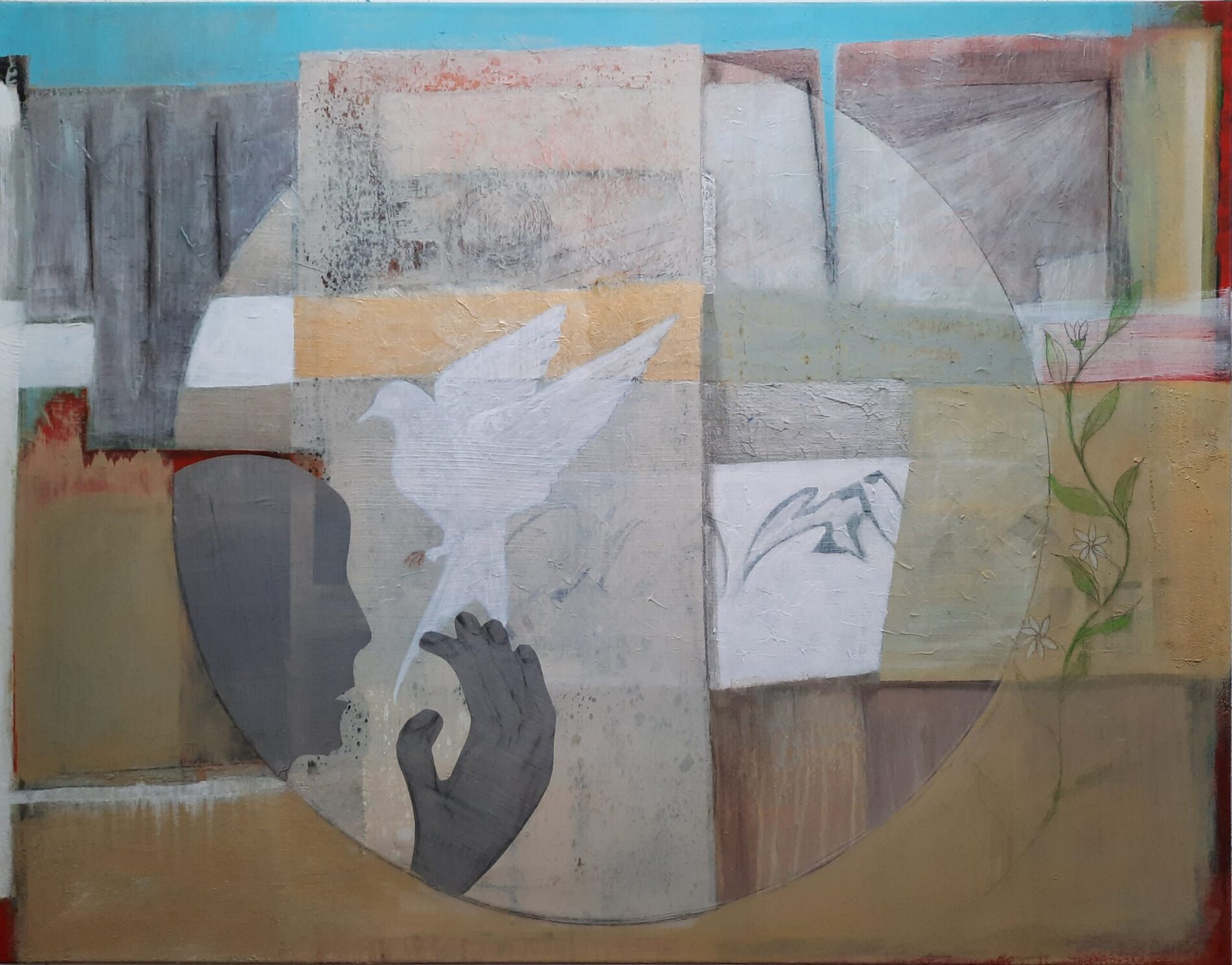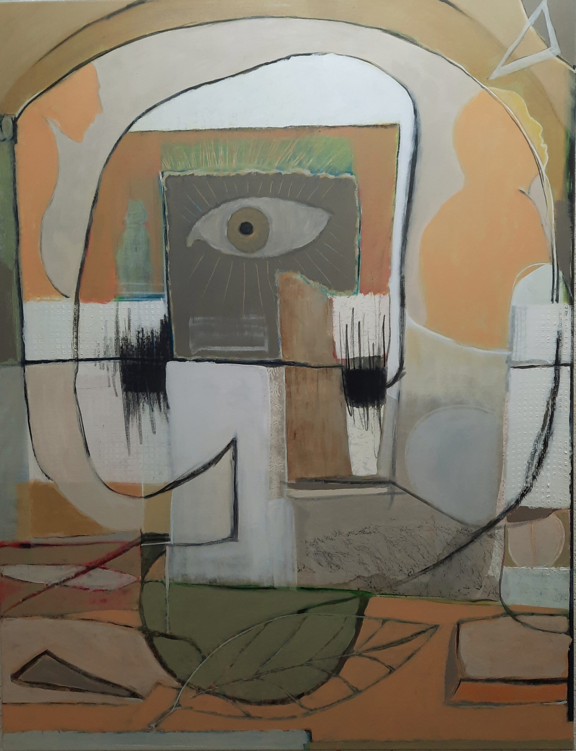 - Mischtechnik Acrylfarbe, Papier, Sand auf Leinwand Format : 120 x 80 cm