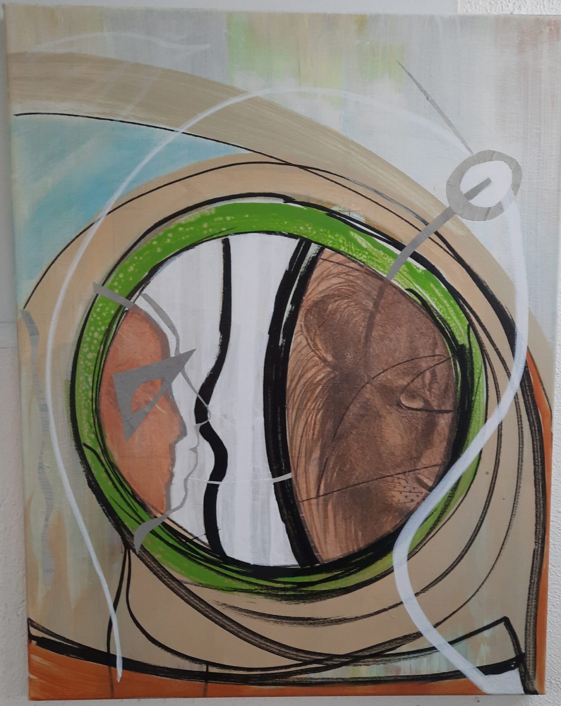 - Mischtechnik Acrylfarbe, Spachtelmasse, auf Leinwand Format : 120 x 100 cm